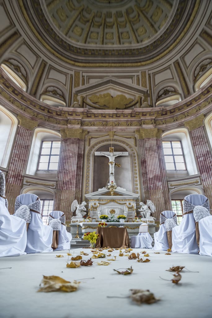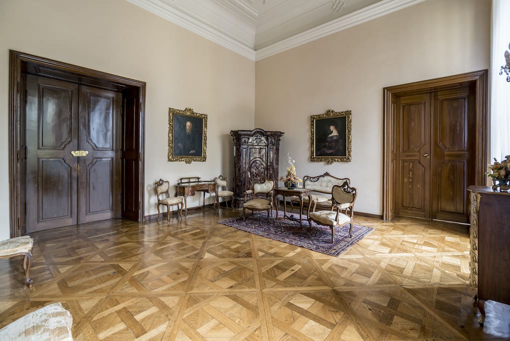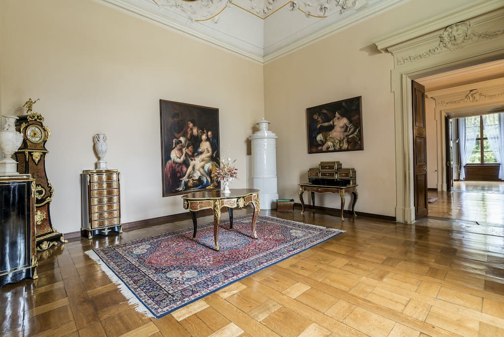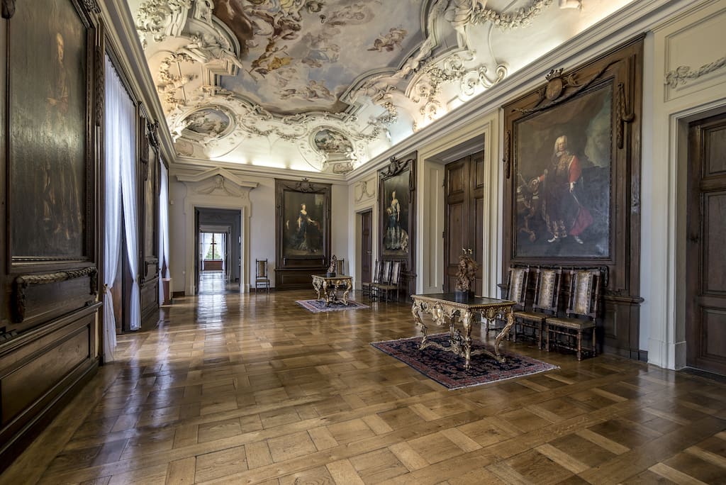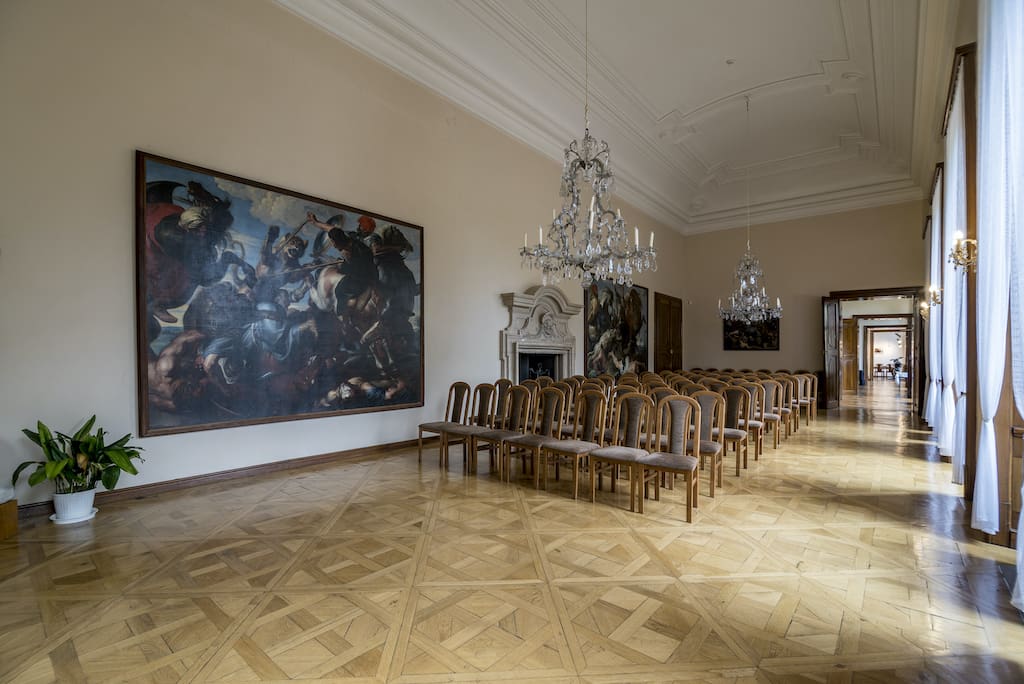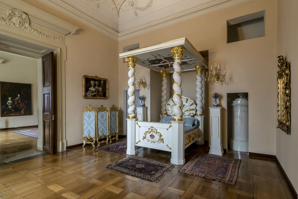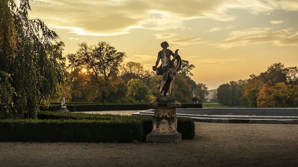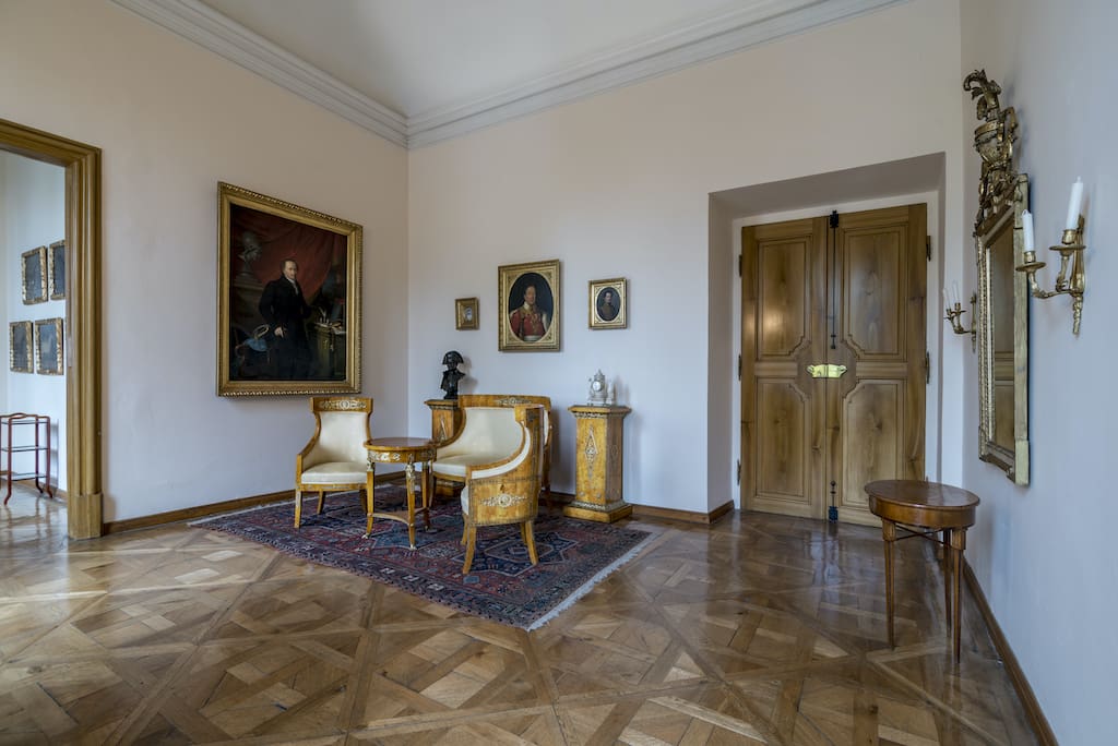 Rezidenci slavného rodu Kouniců vystavěli na přelomu 17. a 18. století. Součástí areálu byl už tenkrát park v módním stylu francouzských barokních zahrad. Zámecké interiéry jsou plné fresek, štuků, umělecké sochařiny a obrazů. Zcela výjimečný je centrální oválný Historický sál, v němž bylo památného 6. prosince 1805 uzavřeno příměří mezi Francií a Rakouskem.